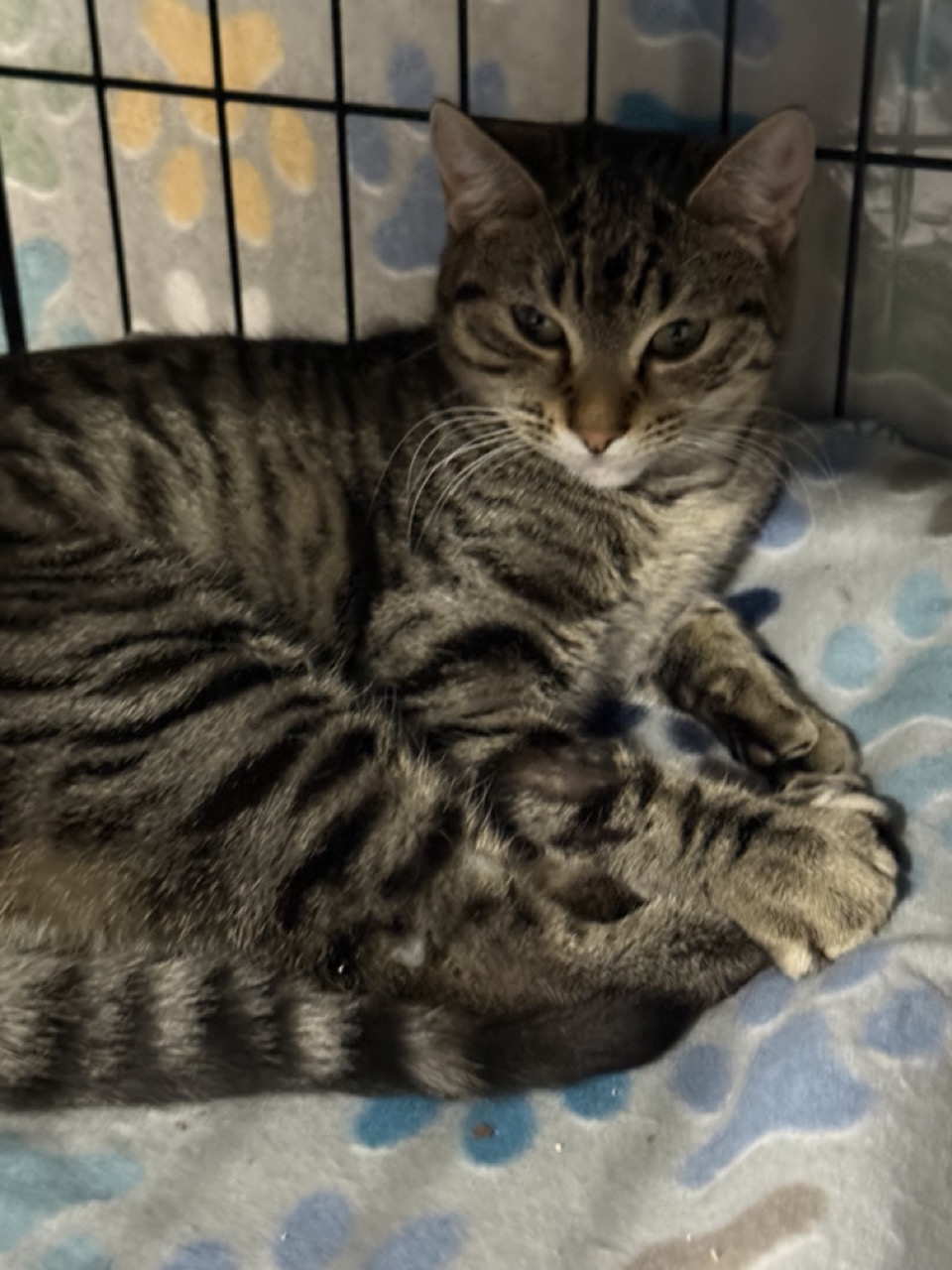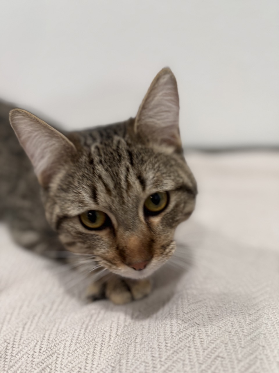 George Yalich2025-12-29T06:35:20-08:00Meet Bam Bam Bam Bam is an 8-month-old big, handsome boy who’s ready to start his own journey. He was surrendered with his mom and sister, and now it’s his turn to find a forever family of his very own. This beautiful domestic shorthair tabby has lovely hints of brown in his coat and the sweetest expression.