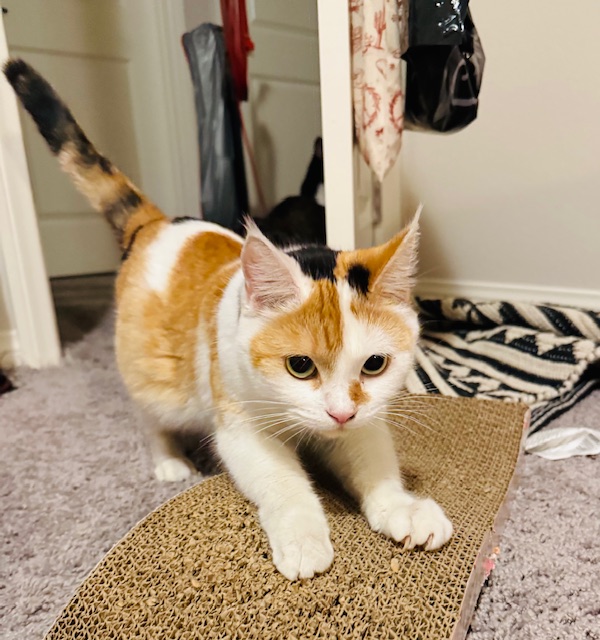 George Yalich2026-01-28T20:10:56-08:00Meet Whiskey! She is fully vetted, microchipped, has had a SNAP test, and been dewormed. She is also has already spayed and completely ready for adoption. This beautiful Domestic Shorthair calico beauty is an absolute stunner! Just look at that gorgeous coat! Whiskey came from an overcrowded home along with her brother, Reese, and now