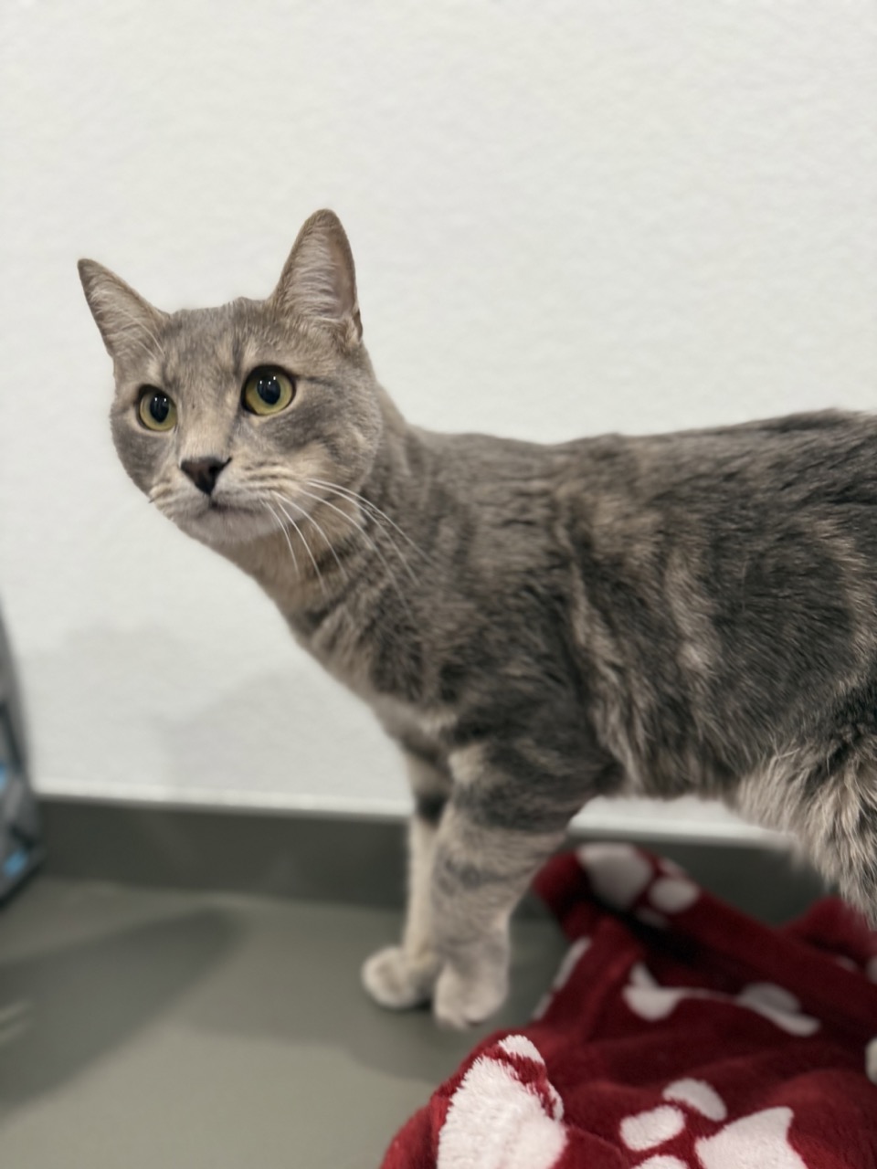 George Yalich2025-11-28T13:24:42-08:00Meet Pebbles, a gorgeous all-grey girl with a heart as soft as her fur. At just a year old, she’s as sweet as can be—affectionate, loving, and always happy to soak up attention from her humans. Pebbles adores being close to her people and will gladly return your affection with plenty of charm. Found on