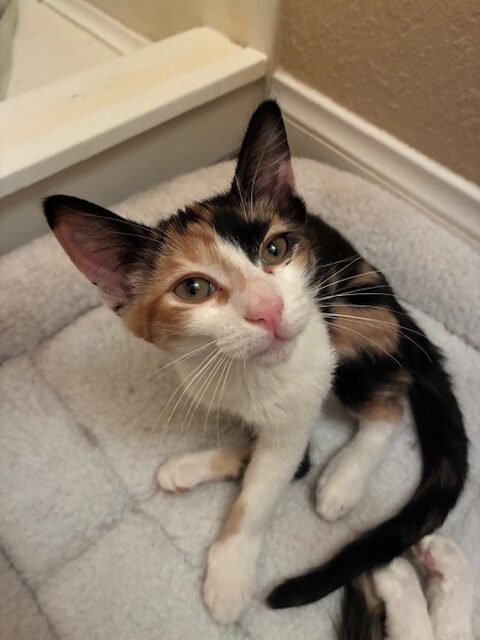 George Yalich2025-10-25T09:25:51-07:00Meet Olivia! Olivia is a 5-month-old short-haired calico kitten with the sweetest personality and a purr that just doesn’t quit! This little purr machine loves attention, gentle cuddles, and playtime — she’s the perfect mix of affectionate and fun. Her soft, colorful coat and loving nature make her irresistible, and she’ll quickly steal your heart (and