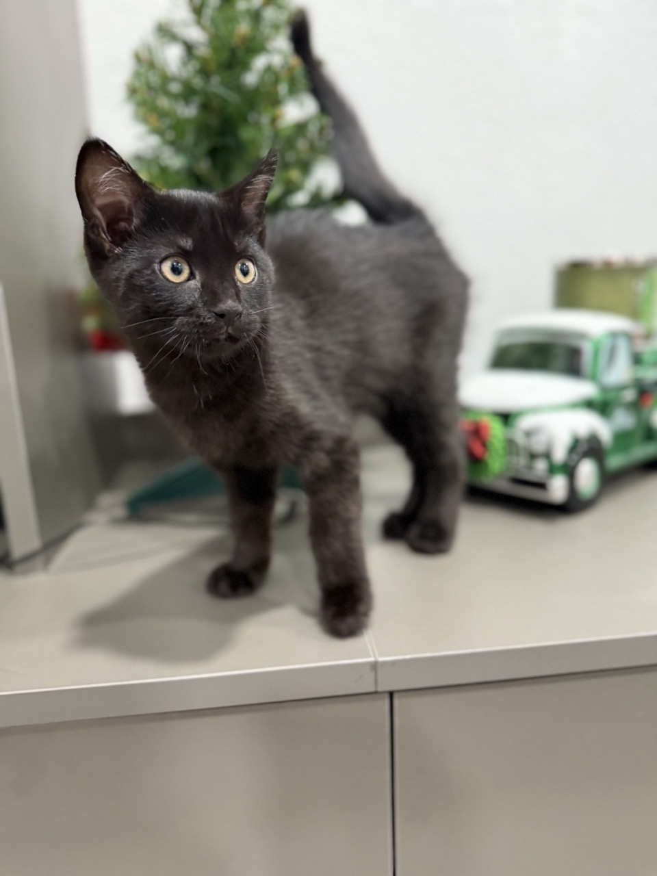 George Yalich2025-11-22T06:33:42-08:00Meet Cowboy! This adorable 3-month-old little black panther is ready to ride off into his forever home! Cowboy is a total sweetheart — playful, gentle, and full of kitten charm. He gets along great with other cats and uses the litter box like a pro. He loves exploring, chasing toys, and soaking up all the