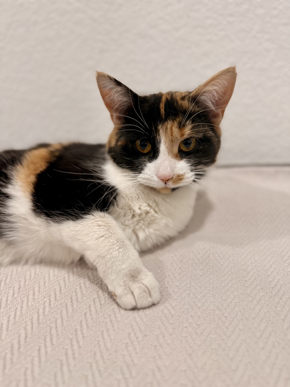 George Yalich2026-01-28T20:10:56-08:00Meet Whiskey! She is fully vetted, microchipped, has had a SNAP test, and been dewormed. She is also has already spayed and completely ready for adoption. This beautiful Domestic Shorthair calico beauty is an absolute stunner! Just look at that gorgeous coat! Whiskey came from an overcrowded home along with her brother, Reese, and now