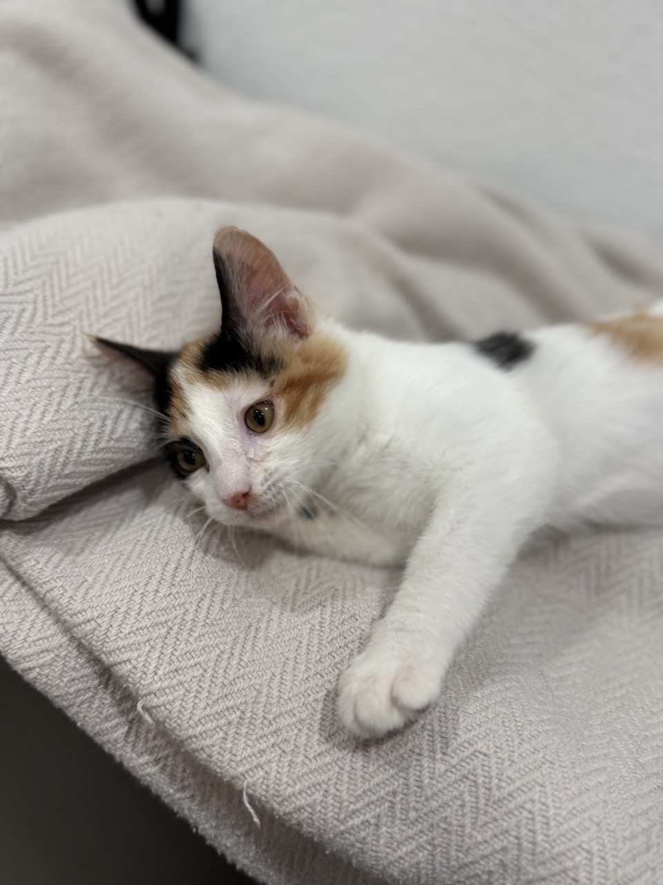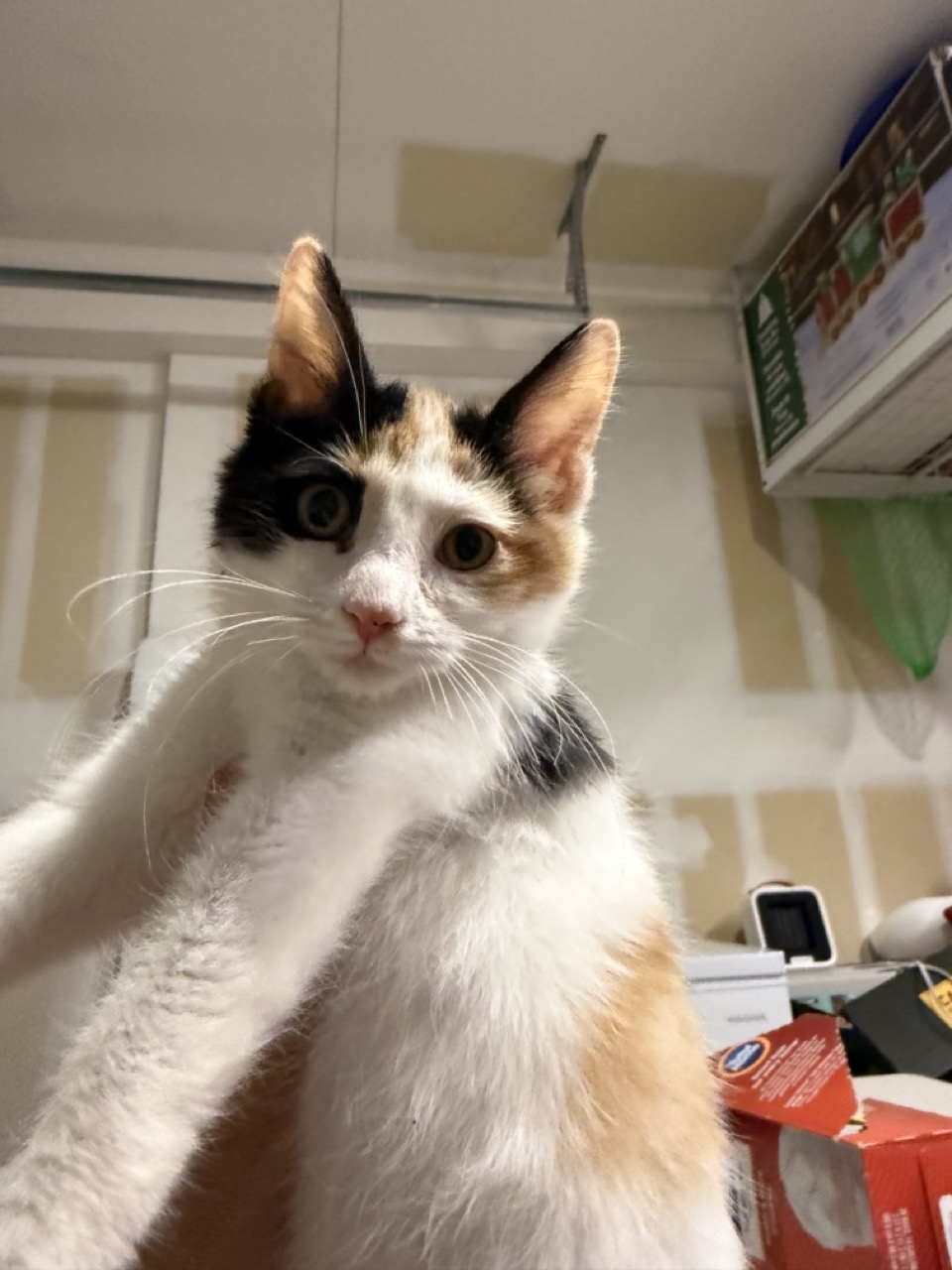 Freska is a beautiful 12-week-old calico kitten with a big personality and an even bigger heart. This sweet domestic shorthair is full of life, playful, loving, and gets along wonderfully with other kitties. She is also fully litter trained—such a smart girl!