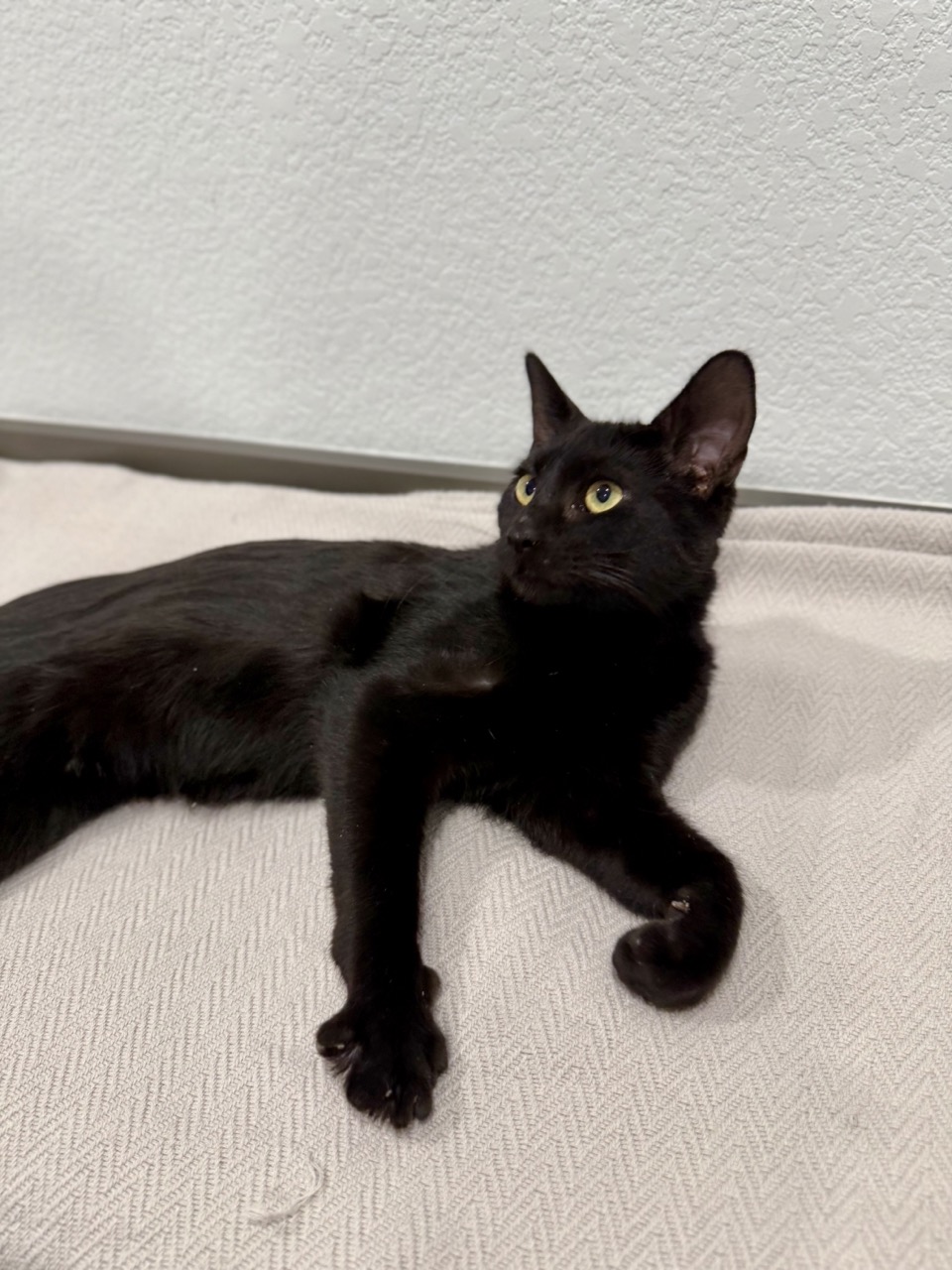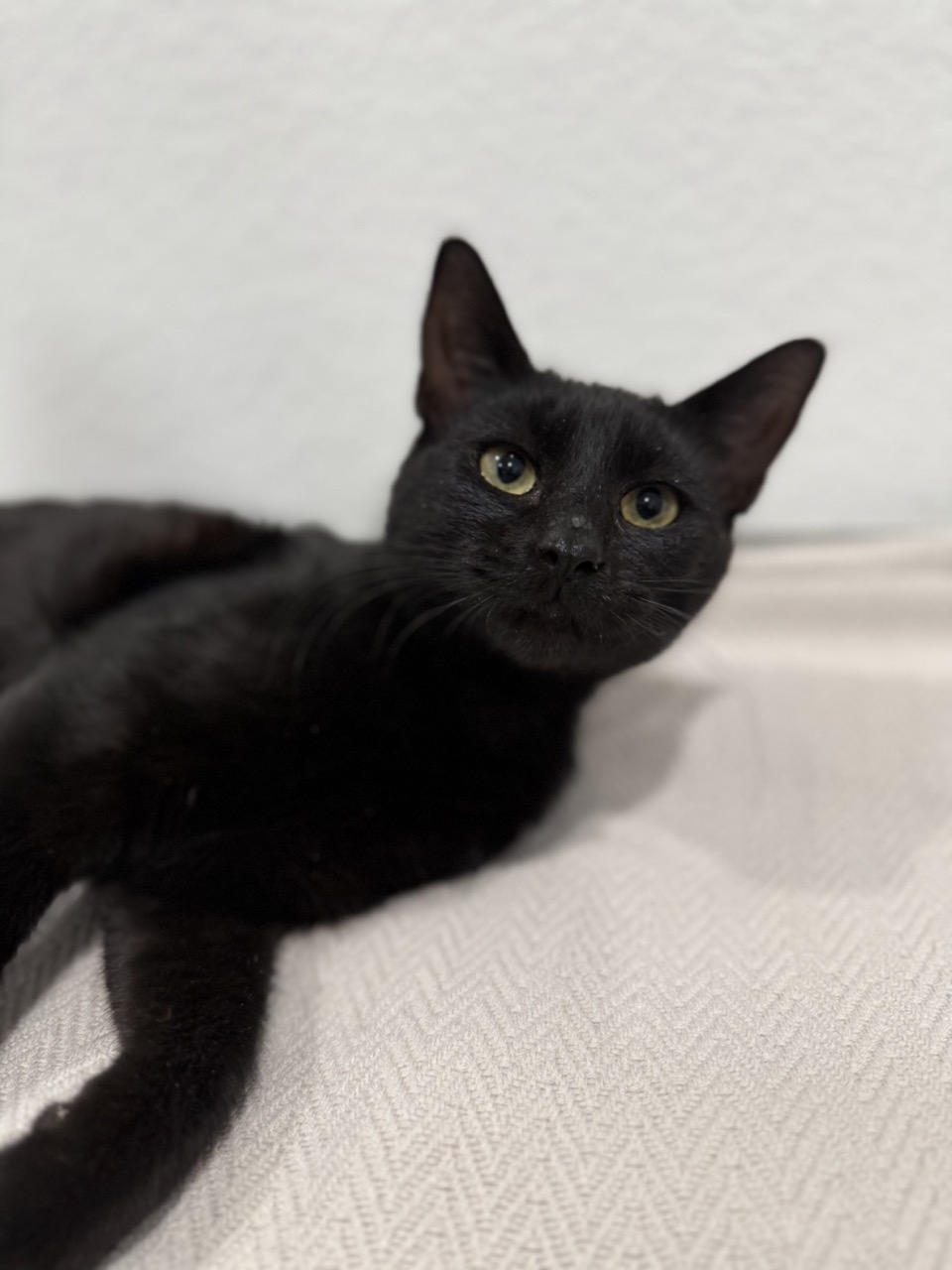 Jetson is a beautiful 6-month-old male Domestic Short Hair kitten with sleek black fur and the sweetest personality you could ever imagine.