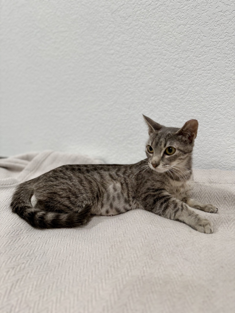 Nala is a beautiful 16-week-old Domestic shorthaired grey tabby girl who is ready to find her forever home. She is fully vetted, microchipped, had a SNAP test, been dewormed,
