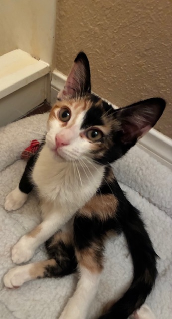 Olivia is a 5-month-old short-haired calico kitten with the sweetest personality and a purr that just doesn’t quit!