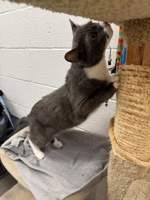 Pipsqueak is a six-year-old short-haired gray and white gentleman with a sweet personality and an easygoing nature. This delightful little guy recently found himself in need of a new home when his owner was no longer able to care for him. While the change has been a big one, Pipsqueak has taken it in stride and is ready to start his next chapter with a loving family.