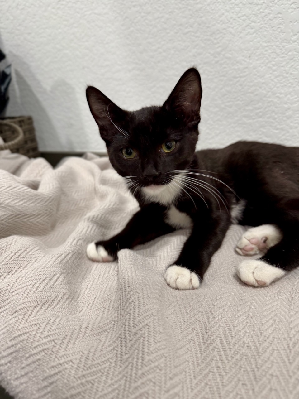 Remi is a beautiful 4 month-old black and white tuxedo kitten with a heart full of love. He was found diving through dumpsters just trying to survive, and now all this sweet baby wants is a safe, loving home.