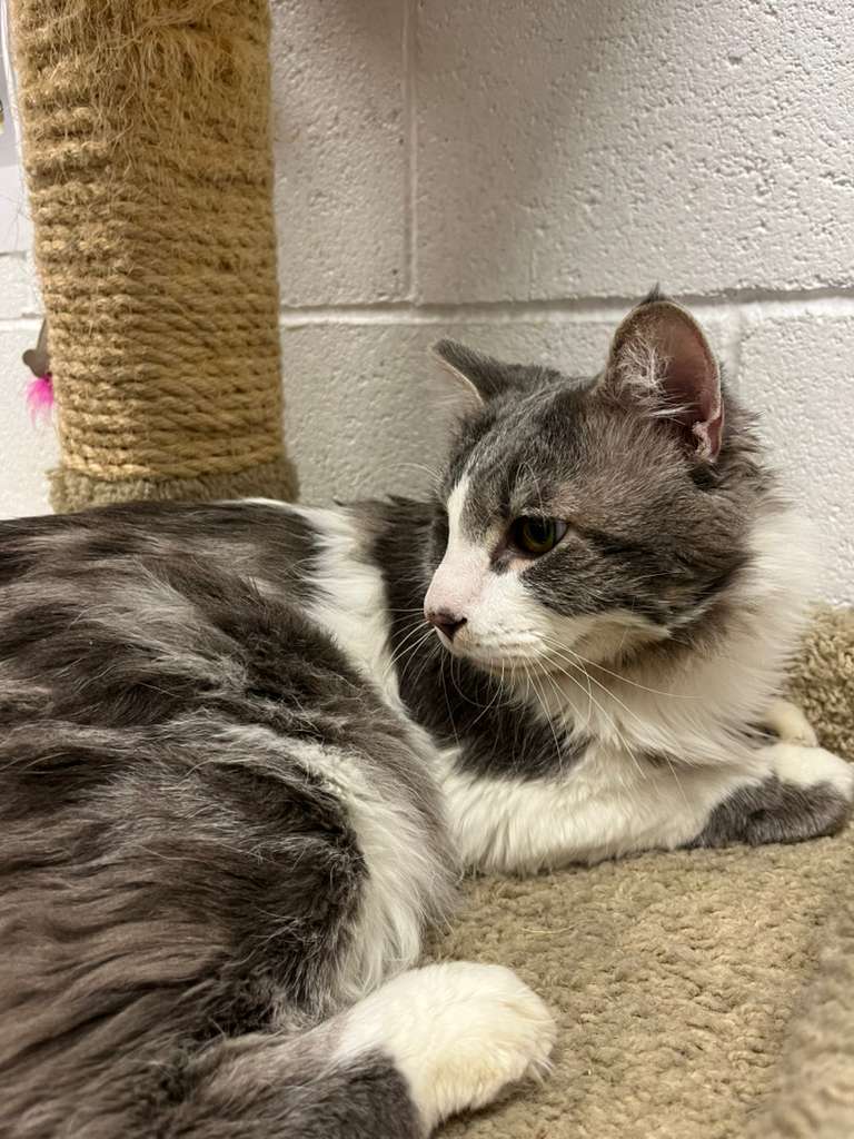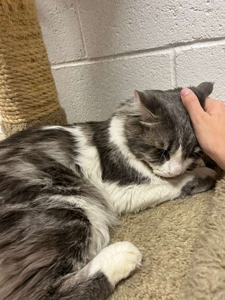 My name is T-Bone I am a 2.5 year male. I am a very sweet shy boy that loves being brushed. I love being cuddled and wet food is my favorite. I wandered into a feral cat colony after being dumped. So I am so happy to be safe.