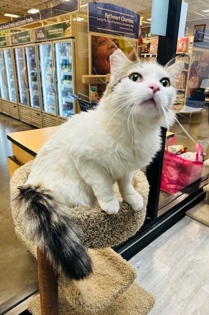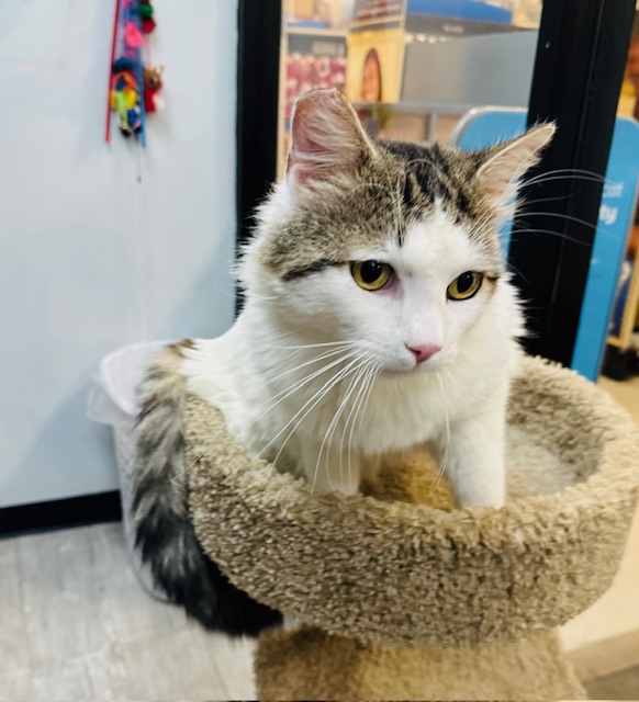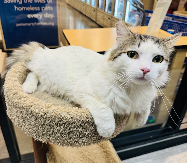 Nancy Kamphaus2024-03-21T17:26:30-07:00This is 3 year old Cloud. He is a long-haired white and tabby mix. He was abandoned on the street recently and was losing hope. He’s one lucky boy to be rescued. He loves attention and will reach up on his back legs to be pet. He gets along with others cats and tolerates children.