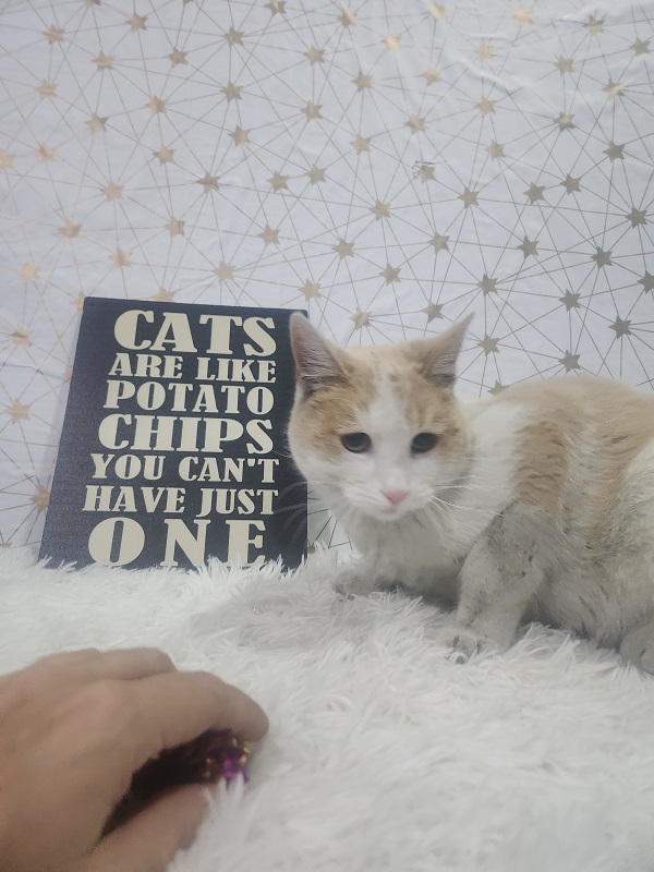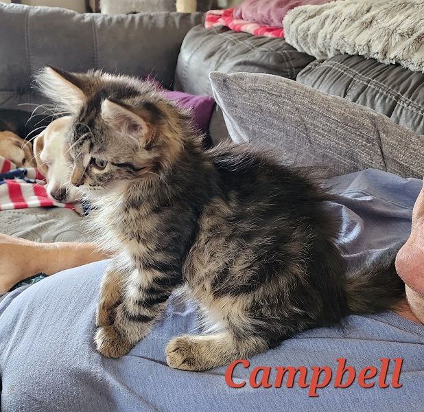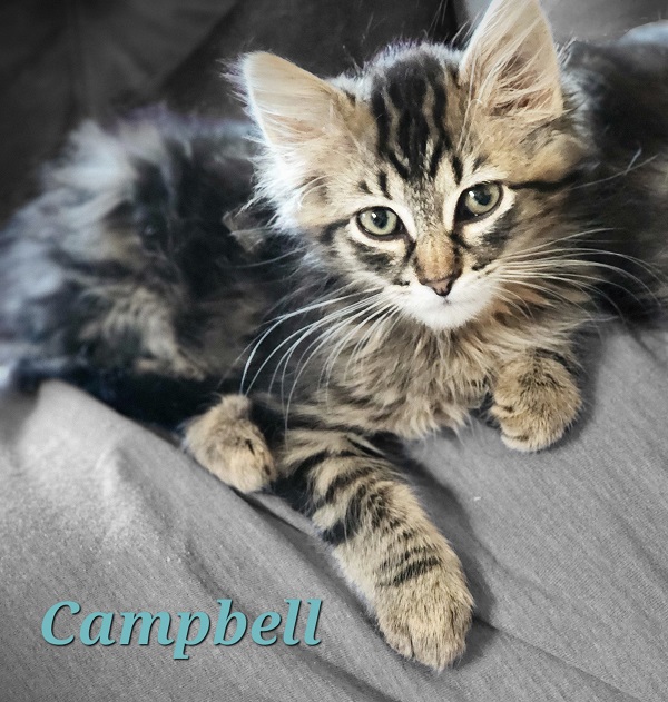 Nancy Kamphaus2024-01-28T15:39:58-08:00Meet three month old Campbell, he is a charming, social little boy who loves to cuddle. He is great with dogs and cats. The adopt fee is $250.00, please follow the link and submit an application at: https://forecloseduponpets.org/cat-adoption-application/