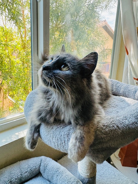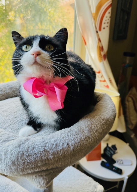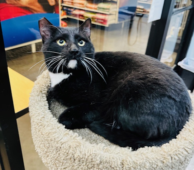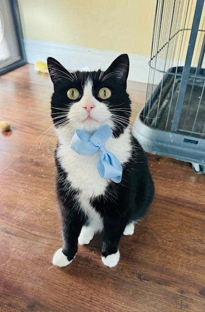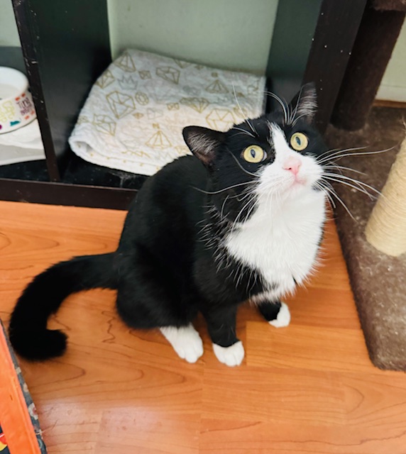 Nancy Kamphaus2024-01-15T20:01:18-08:00Raven Blaze is a gorgeous 7 month old tuxedo. She is a lovely gal who is very affectionate towards her favorite human companion. She also tolerates other cats but does prefer her human to interact with. She is a calm and laid back gal who enjoys relaxing in the sunny window. If you are interested,