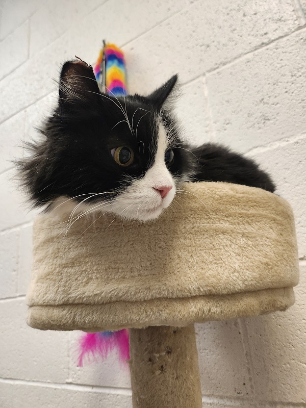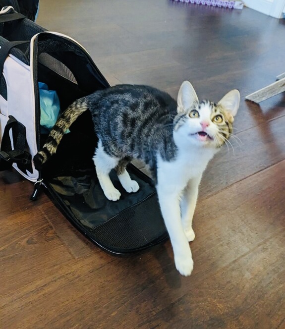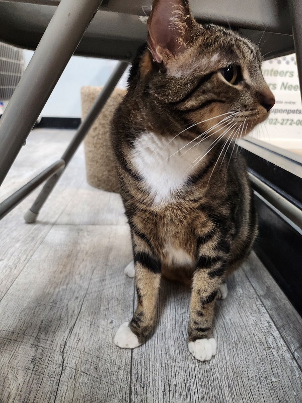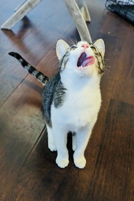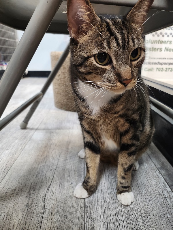 Nancy Kamphaus2023-11-22T11:31:22-08:00Bowtie is a handsome 12 week old male short-haired kitten. He LOVES to play and is very active. His favorite toys are laser pointers and feathers on a fishing pole. He is very affectionate towards his sister and would probably like other cats in his new home. He's got very pretty spiral swirl markings for