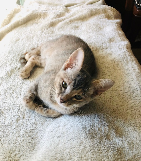 Nancy Kamphaus2023-08-06T16:18:35-07:00Meet four month old Copper, wow what a beauty baby queen she is! She is super social, talkative and outgoing. Full of love, energy and playfulness. She is great with other cats and kids. She is an angel when using her litter box. She comes spayed/chipped/de-wormed/vaccinated/snap tested. If you are interested, my adopt fee is