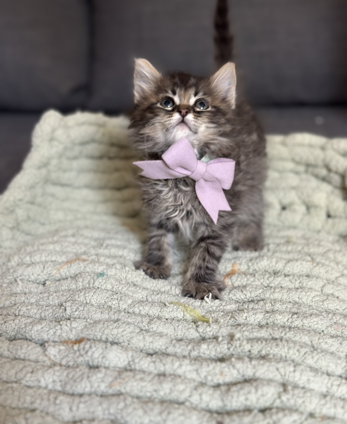 Nancy Kamphaus2023-07-09T17:24:43-07:00This is 12 week old puffball. He’s a handsome boy. He is a playful kitten and has fun chasing his siblings. He’s an affectionate kitten and will keep you company. He’d be a great addition to just about any household. Healthy, robust little babies. come spayed/neutered/chipped/de-wormed/vaccinated/snap tested. If you are interested, my adopt fee is