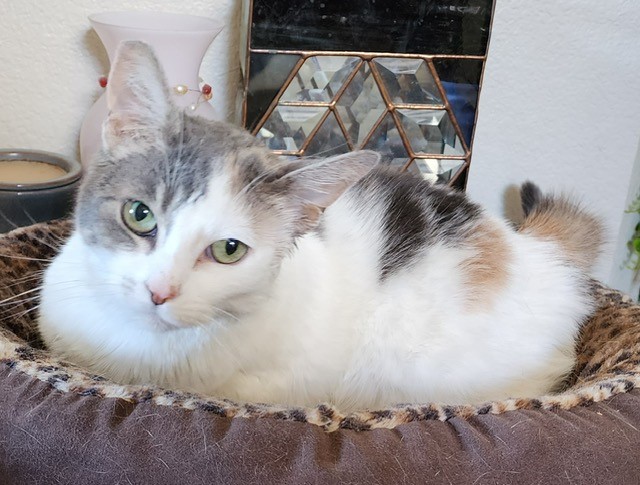 Nancy Kamphaus2023-06-17T08:49:23-07:00This is 1 year old Luna. She is a delightful young kitty. She was pregnant when she was rescued and was a wonderful mom to her babies. Now it’s her turn to be spoiled and taken care of. She is a quiet kitty and enjoys head scratches and belly rubs. She has a sleek coat