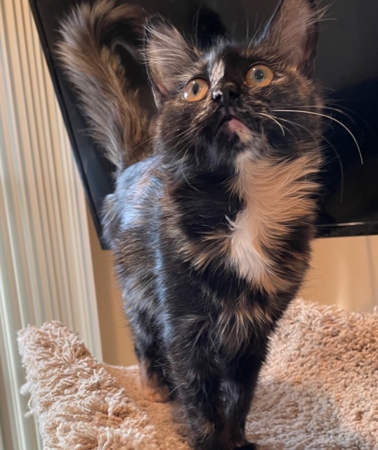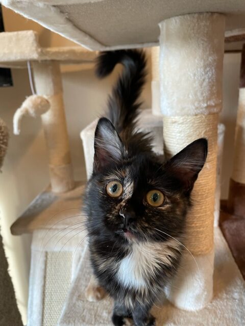 Nancy Kamphaus2022-12-11T11:41:32-08:00Here is 4.5 month old Marissa, she is a spaz!! LOL! High energy, loads of fun, needs lots of activity and playtime. She is great with other cats and sooooo playful! She is box trained and just a joy to be around. The adopt fee is $250.00, please follow the link and submit an application