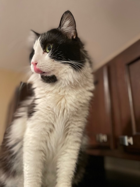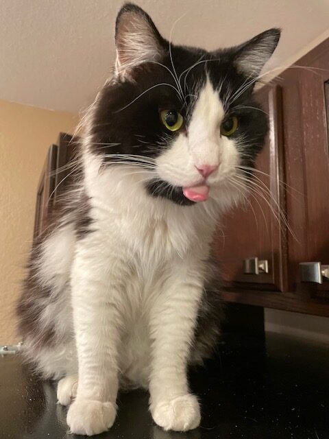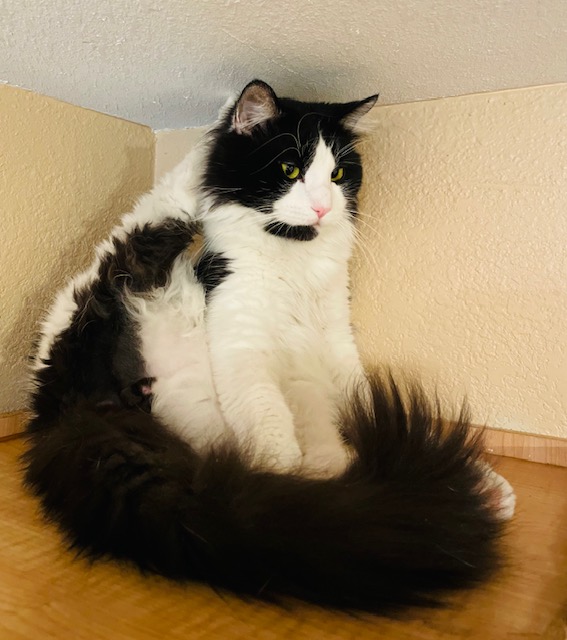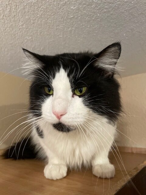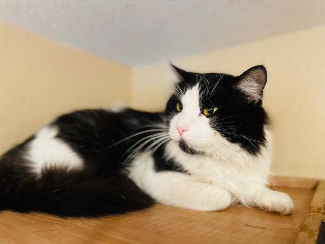 Nancy Kamphaus2022-11-07T15:12:48-08:00This is 1.5 year old Manchitas. He was surrendered by his previous owner, they were forced out of their home and living in their car with Manchitas and two dogs. He is a long haired- black and white beauty. He is a delightful boy who loves people. He needs to be an only kitty in