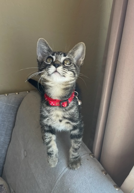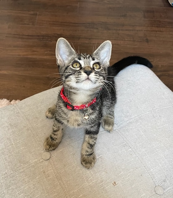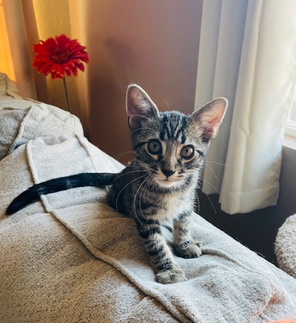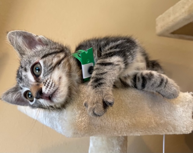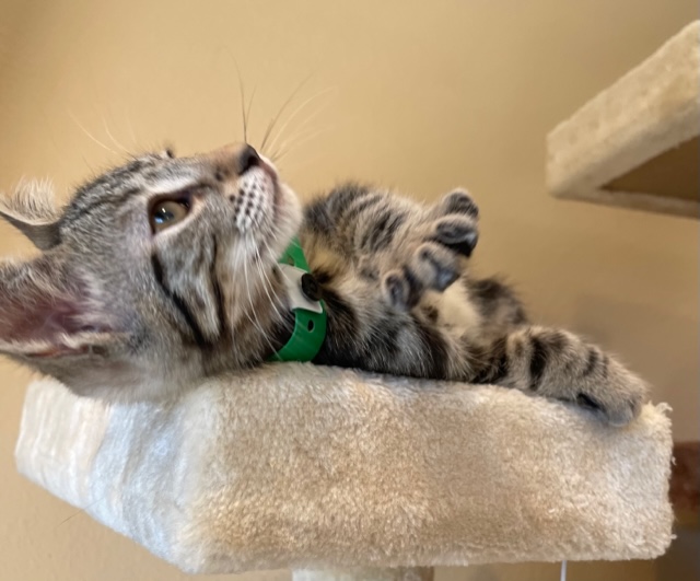 Nancy Kamphaus2022-07-20T00:50:23-07:00This is 12 week old Ryan. He is as adorable as they come with his cute bullseye tabby markings and his gorgeous face. He’s a wonderful kitten who loves people and other cats and kittens as well. He likes to be held and snuggled under your chin . You'll know when he’s content as you’ll